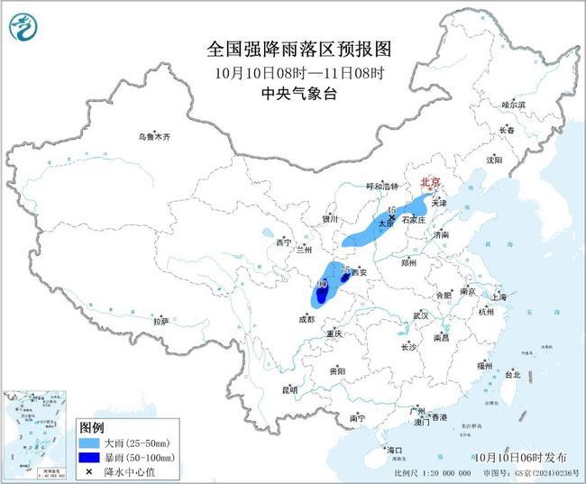 中央气象台将从早上6点起继续发布蓝色风暴预警。 10月10日上午8时起,预计四川盆地西北部、甘肃东部和南部、陕西中南部、山西中部、河北中部等地部分地区有大到暴雨(50~90毫米)。 10 月 10 日至上午 8 点10月11日,部分地区出现短时强降雨(最大小时降雨量20~40毫米)。防御指南: 1、政府及有关部门按照职责做好暴雨应对准备。 2.学校、幼儿园应当采取适当措施,确保学生和儿童的安全。 3、驾驶员应注意道路积水和交通障碍物,确保安全。 4、检查城市、农田、鱼塘排水系统,做好防洪准备。